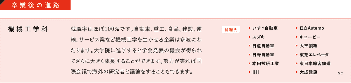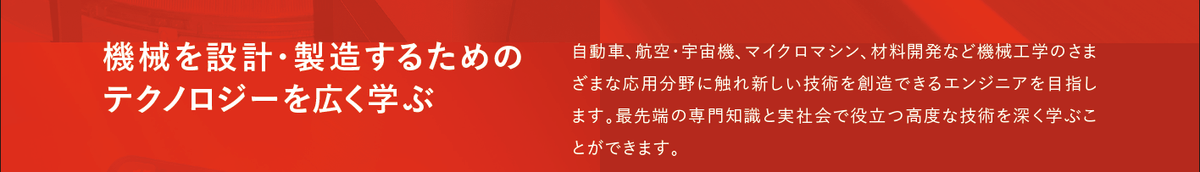 当学科は2022年度にリニューアルしました。産業界の意見をよく聞きオーソドックスな機械工学の科目(4力学など)が確実に身に付くカリキュラムとしました。何事も基礎が大切です。さらに、より具体的なものづくり技術を体得していただくために機械材料分野を強化しました。これは本学科の特徴です。もちろんデータサイエンスなどの新しい科目も導入しました。大変そうですか?心配は無用です。指導教員制などの手厚いサポート、就職サポートを戦略的に推進しています。安心してご入学ください。