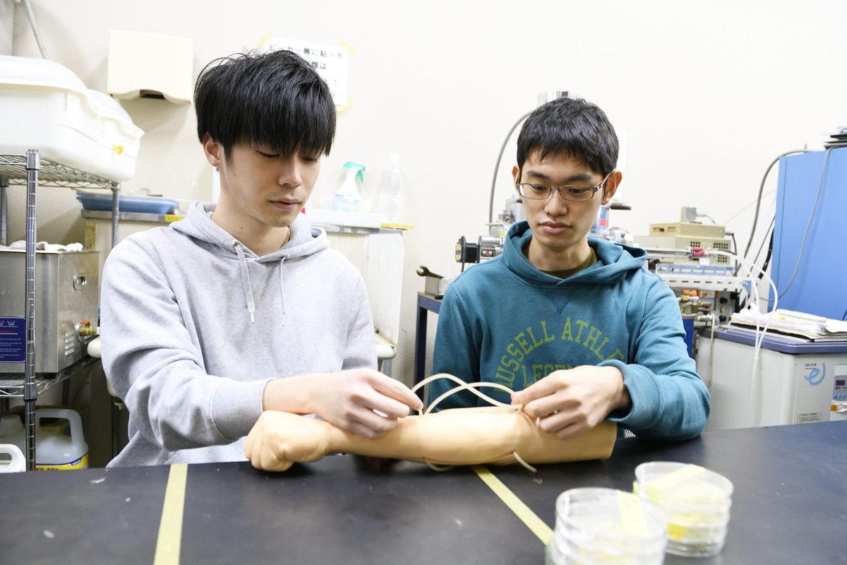 当研究室は、得意とするナノスケール物性計測技術を背景にナノカーボン物質の合成や多彩な異分野融合研究に取り組んでいます。特に、考古学・情報科学と連携した古代金属器・土器の解析技術の開発や、医学・理学・農学と連携した人工靱帯の形成・再生医療の研究に取り組む学生らは異分野融合ならではの難しさや面白さを経験しながら多くの仲間と共に刺激的な研究室ライフを送っています。